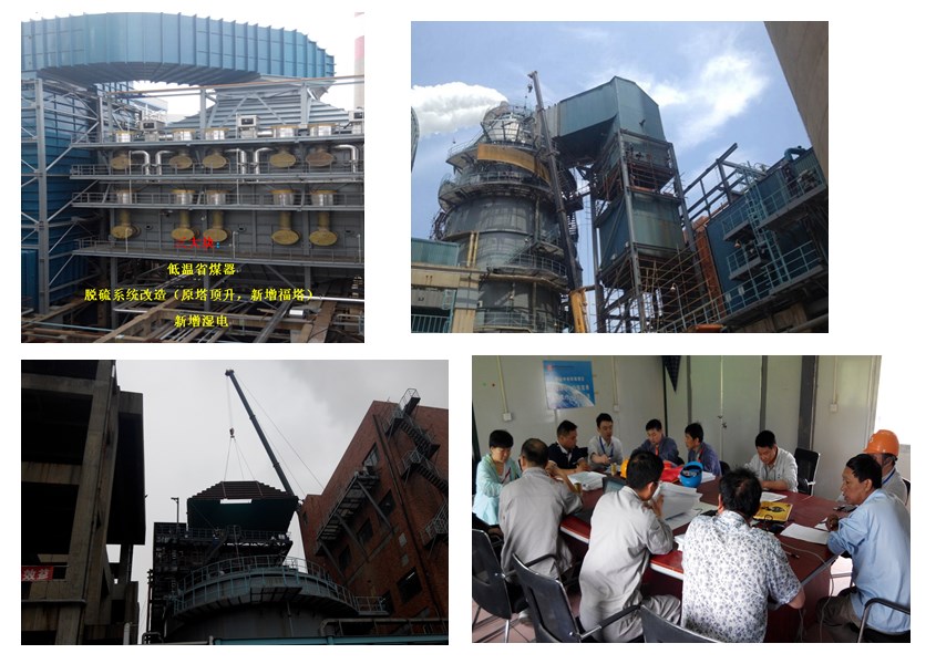 5、6號機(jī)組脫硫提效改造項(xiàng)目;包括新增低溫省煤器、原吸收塔增高、新建副漿液箱、新增濕式電除塵現(xiàn)場所必需的所有的建筑、安裝工作,以及新增設(shè)備的附屬系統(tǒng)安裝、設(shè)備基礎(chǔ)制作、與新設(shè)備沖突的舊設(shè)備、煙道等拆除、清理、恢復(fù),設(shè)備安裝完畢后實(shí)驗(yàn)檢驗(yàn)、單體調(diào)試,配合試運(yùn)直至168結(jié)束。
