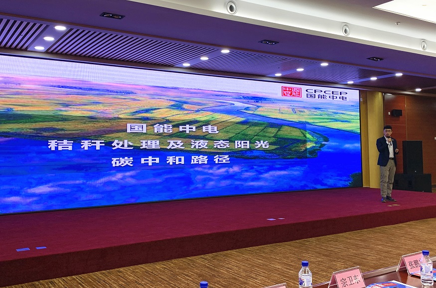 令人驚喜的是,國能中電多項綠色低碳技術(shù)和多個精品項目集中亮相本次展會。尤其是風(fēng)光生物質(zhì)聯(lián)合制儲氫(液態(tài)陽光)一體化碳中和技術(shù)的推出,引起了業(yè)界專家和現(xiàn)場觀眾的極大興趣,吸引了眾多的產(chǎn)業(yè)孵化項目專家以及技術(shù)相關(guān)方前來交流,多家媒體記者進行了采訪報道。在同期舉辦的高峰論壇上,國能中電以“秸稈處理及液態(tài)陽光碳中和路徑”為主題,圍繞秸稈綜合利用與風(fēng)光生物質(zhì)聯(lián)合制儲氫(液態(tài)陽光)技術(shù)進行了專場推介。