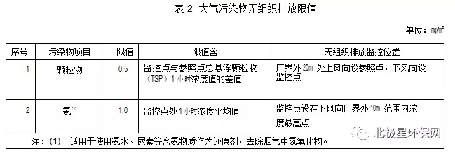 (2)新建企業和現有企業邊界任何1小時平均濃度按表2中規定的排放限值執行。
