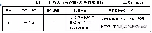 2.2自標準實施之日起,水泥工業企業大氣污染物無組織排放監控點濃度限值應符合表2規定。